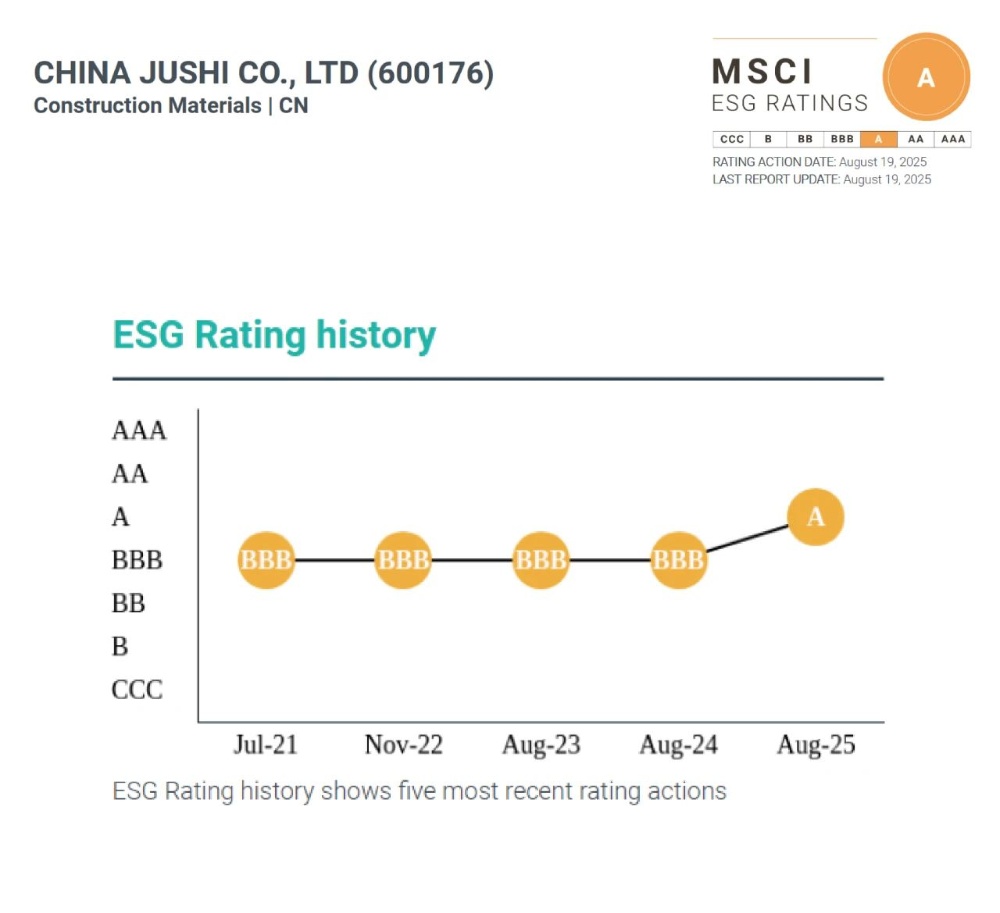 8月19日,中国巨石(600176.SH)在摩根士丹利资本国际公司(MSCI)最新公布的环境、社会及公司治理(ESG)评级中,由BBB级跃升为A级,为行业可持续发展树立了标杆。